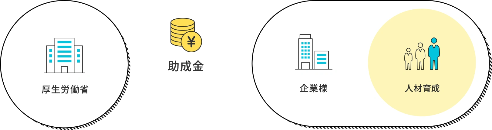 人材開発支援助成金は、企業様が雇用する労働者に対して、職務に関連した専門的な知識及び技能を習得させるための職業訓練等を計画に沿って実施した場合等に、訓練経費や訓練期間中の賃金の一部等を助成する制度です。